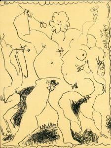 Picasso lithographe III (1949-1956). Monte-Carlo, Sauret, 1956, 4°, br., couv. illustrée, étui en pleine toile brune. Bien complet des 2 lithographies orig. réalisées par Picasso spécialement pour cet ouvrage (couv. à double page et front. en noir). Bel exemplaire.