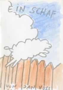 Ein Schaf. A'dam, s. édit., 1987, plaquette in-12, agrafée. Seconde édition tirée à 100 ex. num. et coloriée à la main.