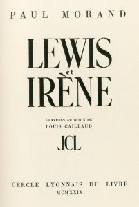 CAILLAUD.- MORAND (Paul). Lewis et Irène. Gravures au burin de Louis Caillaud. Lyon, Cercle lyonnais du Livre, 1929,
