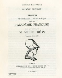 DÉON (Michel) et MARCEAU (Félicien).- Discours prononcés dans la séance publique tenue par l'Académie française pour la réception de M. Michel DÉON le jeudi 22 février 1979. Paris, Typographie de Firmin-Didot et Cie, « Institut de France,...