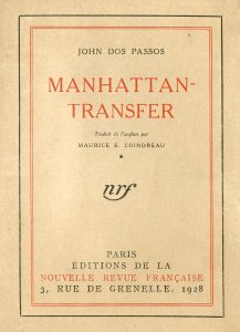 DOS PASSOS (John). Manhattan-transfert. Trad. de l'anglais par M.-E. Coindreau. P., Nouvelle Revue Française, 1928,