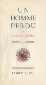 PERRET (Jacques). Un homme perdu. P., Robert Cayla, "Les Amis de l'Originale", 1950,