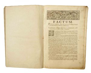 « FACTUM pour les Religieux, Prieur & couvent de l’Abbaye Royale de Notre-Dame de MOLESME, Défenseurs, contre Messire Alexandre de LA ROCHEFOUCAULT, Abbé commendataire de ladite Abbaye, Demandeur. » (1655 ; 20 pages in-folio) Suivi de l’« ADDITION AU FACTUM… du 31 Juillet 1694 » (12pp in-folio), et du « FACTUM pour messire Alexandre de LAROCHEFOUCAULT, Abbé de l’abbaye de Notre-Dame de MOLESME, demandeur, contres les Religieux Prieur & Couvent de l’Abbaye de MOLEME Défenseurs. » (22pp in-folio) – Les trois liés ensembles