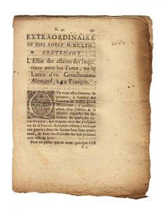 (PORTE OTTOMANE 1662) – 2 Gazettes in-4°, en feuilles – «L’État des Affaires des IMPERIAUX & des OTTOMANS, contenu en la Lettre d’un Gentilhomme Allemand à l’un de ses Amis. » N°25 et « Extraordinaire du 18 Août 1662 contenant...