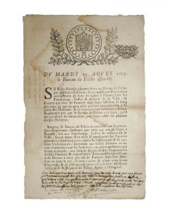 d’en ôter & transporter les immondices dans les trois jours… autrement les Fumiers en seront transportés par les JARDINIERS,… en pure perte.. » – Vignette de la Ville – Note manuscrite signé du Trompette de la ville de Montpellier – Placard (36 x 24) – Etat B –
