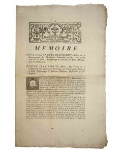(Impr. 8pp gd in-folio) + MÉMOIRE signifié pour Jean BERTIN Marchand Teinturier du grand et Petit Teint d’Orléans…. (Vers 1757 ; Impr. 6pp gd in-folio) + MÉMOIRE pour le Sieur Samuel BEAUDEPUY, Maître de la Communauté des Marchands teinturiers en Soye, laine, fil & Coton de la ville, Faubourgs et banlieue de Paris, contre Jean BERTIN Maitre, Juré-Garde de la Communauté des Marchands Teinturiers du bon et grand teint de la Ville, faubourgs et Banlieue d’Orléans, demandeur - Impr. à Orléans, chez Pierre Rouzeau, 1759 (Impr. 7pp gd in-folio)-