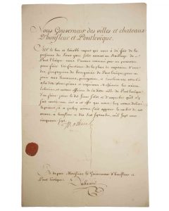 (CALVADOS) - Pièce Signée “MATHAVEL” Gouverneur des Villes et Châteaux d’HONFLEUR et PONTLEVÊQUE, Contresignée DUHAMEL - HONFLEUR, le 15 septembre 1757 -