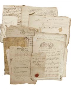 + De SCÉVOLE fut Secrétaire du Roy à Argenton en Berry ; Mr De SCÉVOLE Président du Grenier à Sel d’Argenton 1764 + Remède pour la maladie des bêtes 1775 + Requête contre les Augustins de MONTMORILLON, Février 1777, dressée par Denis Louis Robin De SCÉVOLE (Manuscrit de 53 pages in-folio) + 2 Cahiers contenant copies collationnées concernant la Seigneurie de VILLEBUXIÈRE (1640 à 1673), une signée Robin de SCÉVOLE, à Argenton le 1er Janvier 1786 et à Saint Benoit de Sault en 1722 + Correspondance adressées à Robin De SCÉVOLE Député de l’Indre à Paris et à Argenton. Belle lettre de Châteauroux du 7 avril 1821, de son Cousin, du Maire de St Benoit de Sault 1821, LECOQ Marchand Orfèvre Joaillier à Paris (de 1792 à 1818) – Lettres, Expéditions notariés, mémoires de justice, quittances, etc. -