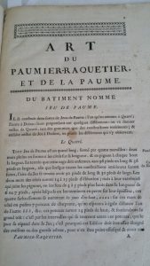 [JEU DE PAUME]  GARSAULT (M. de) Art du Paumier-Raquetier et de la Paume. 1 vol. gd in-folio de 34 pp. & 5 planches à pleine page, relié ½ veau, dos lisse à filets dorés. Paris Briasson, David, Le Breton, Durand 1767. Extrait de...