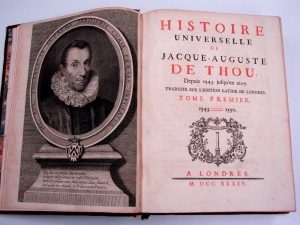 THOU (Jacques-Auguste de) Histoire universelle depuis 1543 jusqu'en 1607 traduite sur l'édition latine de Londres. 16 forts vol. in-4 de...