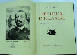 LOTI (Pierre) Pêcheur d'Islande. Nombreuses illustrations en couleurs dont 18 hors-texte de M. Méheut. 1 vol. in-8 carré de 243 pp. relié ½ chagrin bleu à coins, dos à nerfs, couverture & dos conservés, tête dorée. Paris Calmann-Lévy 1936...