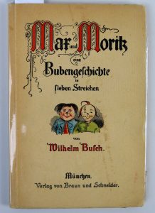 BUFCH Whilelm , Mar und Morik eine Bubengefchichte in fieben streinchen , éditions Munchen , 1951 Nombreuses illustrations en couleur et en noir et blanc. Couverture souple illustrée d’une vignette en couleur. Texte en allemand. ...