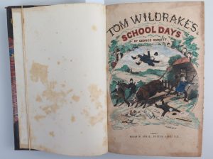 EMMET Georges , Tom Wildrake’s schooldays , édition Hogarth house , Londres , in-8 Nombreuses illustrations en noir. Le texte est en anglais. Demi-reliure à coins bordeaux , premier plat papier marbré , dos lisse , titre doré. Quelques...
