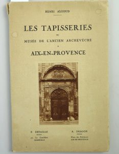 ALGOUD Henri , Les tapisseries du musée de l’ancien archevêché à Aix en Provence , édition Detaille et Dragon , Marseille, in-8 Nombreuses photographies de F et A Detaille. Couverture souple rempliée et illustrée.