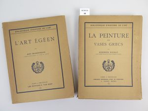 CHARBONNEAUX JEAN , L’art Egéen , collection bibliothèque d’histoire de l’art , édition G.Van Oest , 1929 , in-4 Couverture souple , on joint de la même collection la peinture des vases grecs de Georges Nicole.