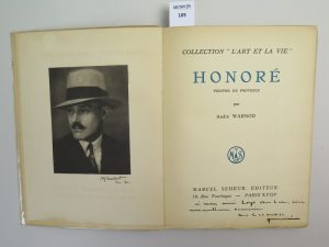 WARNOD André , Honoré peintre de Provence , édition Marcel Seheur , collection l’art et la vie ,Paris , 1931 Exemplaire n° 118/700 exemplaires. Gravure réalisé par M. Lambert en frontispice , contient de nombreuses illustrations en noir et...