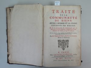 DERENUSSON , Traités de la communauté des biens entre l’homme et la femme conjoints par le mariage , édition Jacques Lefebvre , Paris , 1699 , in-folio