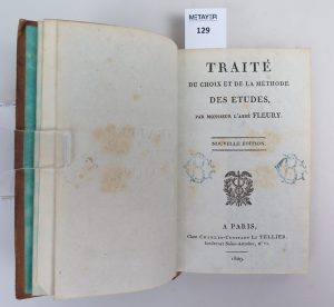 FLEURY L’ABBE , Traité du choix de la méthode , des études , édition Charles Constant Le Tellier , 1809 , in-12 Reliure en veau d’époque, dos lisse orné de fleurons dorés , pièce de titre en noir. Quelques rousseurs.