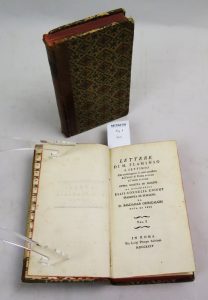 2 volumes , traduit en italien par Baldasar o Deschalchi. Les tranches sont rouges. Reliure demi-cuir à coins marron. Dos lisse. Les mors du deuxième volume sont abimés. Intérieur des plats dominotés.