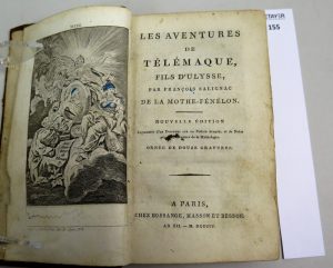 SALIGNAC François , Les aventures de Télémaque fils d’Ulysse , édition Bossange Masson et Besson , Paris , 1804, fort in-8 Edition orné de 12 gravures par Tardieu l’ainé. Reliure plein veau marbré , dos lisse orné de dorure , titre dans...