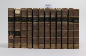12 volumes. Histoire de la Bourgogne ( en deux tomes , la coiffe est frotté) Histoire de Gènes et du Piémont par Chambolle , Histoire de Suisse par Philarete Chasle , Histoire des Etats Unis par Barbaroux , Histoire de Plata de Buenos Aires par Ferdinand Denis , Histoire du Mexique par E. de Monglav , Histoire de Naples et de Sicile par S.D , Histoire de la République de Venise par Carrion-Nissas , Histoire du Danemark par P.Lami , Histoire de l’Ecosse , Empire Germanique. Contient de nombreuses gravures et cartes. Demi reliure cuir verte. Certains mors sont frottés. Ex-libris de la Marquise de Talhouet.