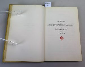 LA SOCIETE DE COMMENTRY FOURCHAMBAULT ET DECAZEVILLE , 1854-1954 , édition office de la propagande , 1954 , in-8 Ouvrage relatant l’histoire des aciéries de Fourchambault et d’Imphy. Contient de nombreuses reproductions de gravures et de...