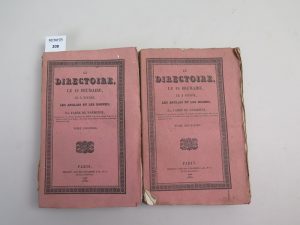 LE DIRECTOIRE LE 18 BRUMAIRE , LE 3 NIVOSE , édition Bréquet , les anglais et les moines , 1830 , in-8 2 volumes brochés , couverture souple rose et poussérieuse. Coiffe et dos déchirés, quelques manques de papier. ...