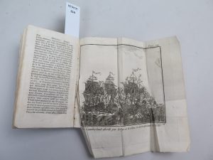 Edition ornée de 6 planches bien complètes ( deux sont déchirées mais sans manque p. 83 et 115) et un frontispice représentant l’auteur qui se détache.. Reliure rigide en veau en mauvais état , mouillures. Relié à la fin de l’ouvrage l’éloge de René du Guay Trouin.