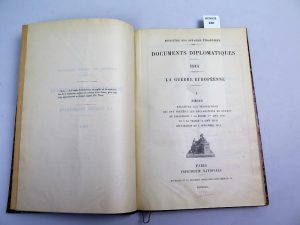 la France. Déclaration du 4 septembre 1914. Coupure de journaux relié à la suite. Annotations érudites sur certaines pages. Demi reliure cuir , premier plat papier mabré , dos à 5 nerfs , caissons ornés de dorures.