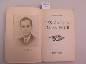 REDIER Antoine , Les cadets de Saumur , éditions Emmanuel Vitte , Paris , Lyon , 1940 Illustration en frontispice représentant le lieutenant Jacques Desplats , contient une carte dépliante à la fin de l’ouvrage. Couverture souple orné d’une...