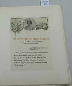 CHARPENTIER OCTAVE , Le chevalier aux fleurs , éditions de la caravelle , 1941, in-4 Ex n°208/280 , un des 165 sur vélin d’arches. Une gravure de Georges Rochegrosse précède la page de titre. Très fines gravures en noir et en couleurs. En...