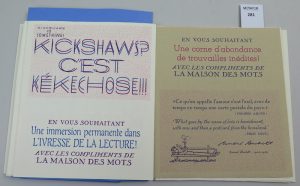 CROMBIE John , Quelques cartes postales de la maison des mots , édition Kickshaws , La Charité sur Loire , in-8 oblong Composé mis en pages et imprimé par l’auteur en une édition limité à vingt-six exemplaires marqués de A à Z et quelques...