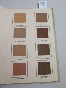 Très rare ouvrage en anglais présentant 24 échantillons de soie dans un montage à fenêtre. Couverture rigide illustrée.