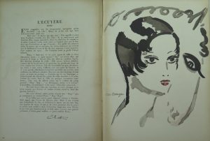 Textes de différents auteurs dont Colette , Sacha Guitry , André Maurois. Edition ornée de nombreuses illustrations de différents artistes dont Sem , Raoul Dufy. Manque l’illustration de Marie Laurencin. La célèbre gravure de Van Dongen , la cavalière, est bien présente et en bon état. Premier plat de la brochure avec une fenêtre.