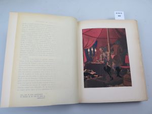 SAINT SIMON , Mémoires , éditions Hachette , Paris , 1949 , in-8 N°716/2300 , un des 2000 sur vélin . 5 tomes ornés de 204 illustrations par Brissaud reproduites en phototypie par les ateliers Duval. Reliure souple ornée d’un écusson. ...
