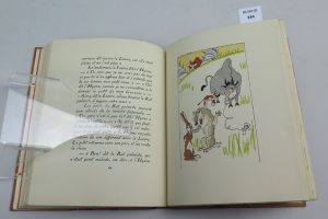 N°287/500 sur vélin. Contient une trentaine d’illustrations en couleurs principalement hors texte de Jacques Touchet. Demi-reliure cuir à coins cuir saumon , dos à 4 nerfs avec titres dorés dans un décor losangé de couleur orange se terminant sur les deux plats , papier marbré orange. Couverture souple illustrée de dessins dorée , conservée.