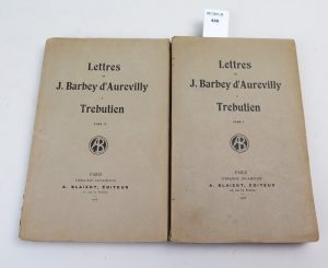 BARBEY D’AUREVILLY Jules , Lettres au Trébutien , édition Auguste Blaizot , Paris , 1908 , in-8 2 tomes , tiré à petit nombre. Portrait de l’auteur gravé par Georges Noyon. Couverture souple, dos légèrement insolé. ...