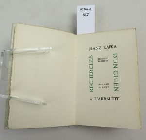 KAFKA Franz , Recherches d’un chien , éditions à l’arbalète , 1944, Lyon , petit in-12
