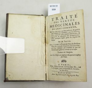 SMITH M , Traité des vertus médicinales de l’eau commune , édition Guillaume Cavelier ,Paris , 1725 , in-12