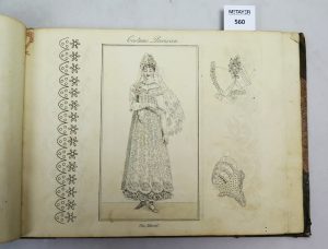 Contient de nombreuses gravures représentant des costumes de mode féminins en couleurs. Demi-reliure cuir à coins , plat papier marbré passé , pièce de titre dorée. Dos lisse orné de fleurons dorés.