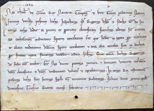 Marne. Charte de février 1234. 18 x 25 cm. Magnifique charte de Thibaut 1er de Navarre, comte de Champagne, dit « Thibaud le chansonnier » (1201/1253). Confirmation de don et de vente par Thibaut de Navarre comte de Champagne. « Nous Thibaut par...