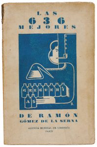 1920 ca. (RUSTICA ILUSTRADA). GOMEZ DE LA SERNA, RAMON; BEBEIGDE [ilustrador]: LAS 636 MEJORES GREGUERIAS DE... Paris: Agencia Mundial de Librería, sa. 8º menor., 166 p. Láminas y rústica ilustrada por BEBEIGDE.