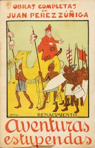1920 CA. (RUSTICA ILUSTRADA). PEREZ ZUÑIGA, JUAN: AVENTURAS ESTUPENDAS. Madrid: Ed. Renacimiento. 8º. 287 p., 1 h. Rústica ilustrada por Xauradó y Zuñiguita.