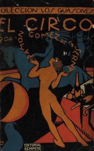1924. (RUSTICA ILUSTRADA-VANGURADIAS). GOMEZ DE LA SERNA, RAMON: EL CIRCO. Valencia: Editorial Sempere, s.a. Serie ´Los Guasones´. 8º. 326 p. Ilustraciones de APA y del propio autor. Enc. en tela reciente con tejuelo conservando la rústica...