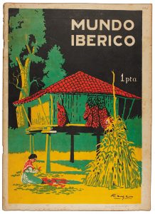 1927-1928. (RUSTICA ILUSTRADA). VERDAGUER, MARIO (DIR.): MUNDO IBERICO. Barcelona: Imp. Costa, 1927-1928. 11 Números comprendidos entre junio de 1927 y enero de 1928. 28 p. c/u, abund. publicidad. Rústica, cubiertas ilustr. firmada por Ochoa,...