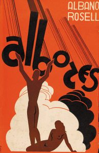 1930 ca. (RUSTICA ILUSTRADA). ROSELL, ALBANO; RENAU, JOSEP: ALBORES. Valencia - Barcelona: Biblioteca de Estudios - Impresos Costa, s.a. 8º mayor. 158 p. 1 h. Portada de Josep Renau. Dedicatoria manuscrita del autor, en catalán, fechada en...