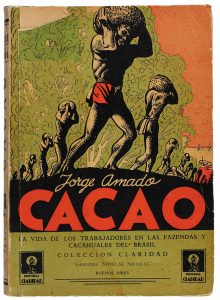 1933 ca. (RUSTICA ILUSTRADA). AMADO, JORGE: CACAO. Novela. La vida de los trabajadores en las fazendas del Brasil. Trad. Hector F. Miri. Ilustr. de Santa Rosa Junior. Buenos Aires: Coleccion Claridad, Grandes novelas Sociales, s.a. 8º. 125 p., 1 h....