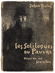 1934. (RUSTICA ILUSTRADA). RICTUS, JEHAN; STEINLEN [ilustrador]: LES SOLILOQUES DU PAUVRE. Paris: Eugène Rey, 1934. 8º. 256 p. Ilustraciones y rústica ilustrada por Setinlen en ambas caras. Pequeñas faltas en los extremos del lomo.