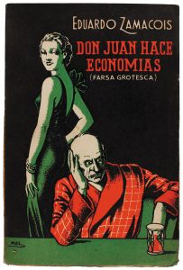 1936. (RUSTICA ILUSTRADA-TEATRO). ZAMACOIS, EDUARDO: DON JUAN HACE ECONOMIAS. Farsa grotesca en once jornadas. Madrid: Ed. Resurección, 1936. 8º mayor. 203 p. Rústica ilustrada. Intonso.