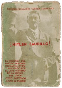 1937. (NAZISMO). DIETRICH, OTTO: HITLER, CAUDILLO. El partido nacional-socialista vivido y analizado por el jefe supremos de la prensa del Reich Otto Dietrich. Granada: Manuel Marin, 1937. 8º. 222 p. Rústica ilustr., enc. deteriorado.[Más:]...